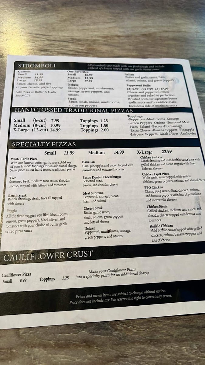 Welcome to Mel's Pizzeria, your go-to spot in Kittanning for delicious, mouthwatering pizzas and more. Nestled at 353 Butler Rd, this family-friendly establishment is beloved by locals and visitors alike. The menu boasts an array of specialty pizzas, from the savory Buffalo Chicken to the unique Taco and Bacon Double Cheeseburger. Vegetarian options like the Veggie pizza and Cauliflower Pizza meet diverse dietary preferences.